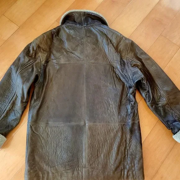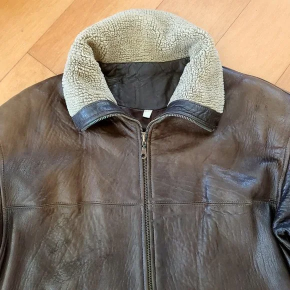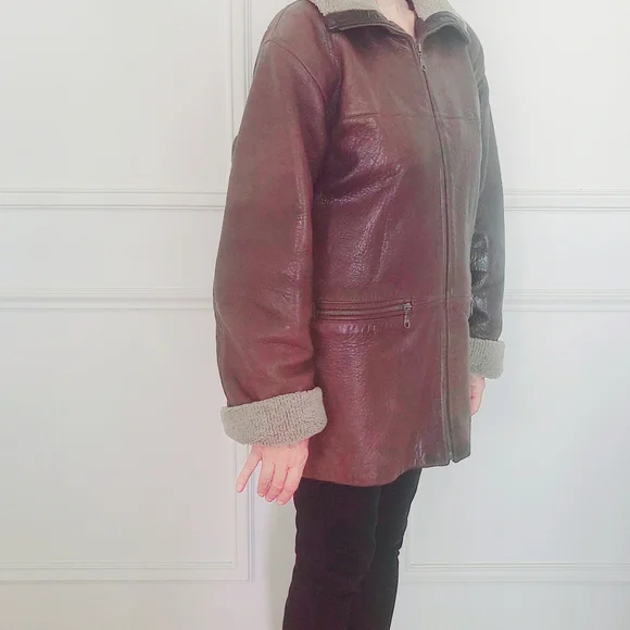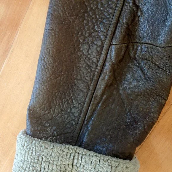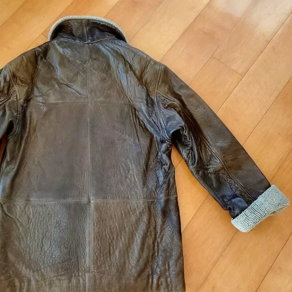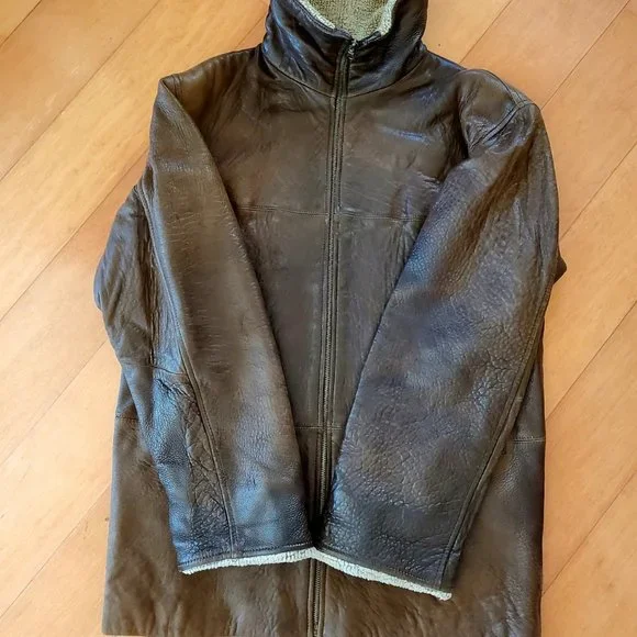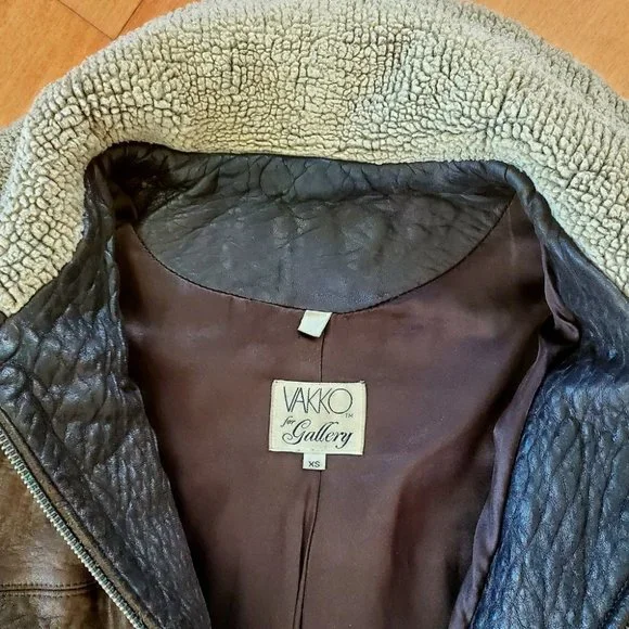 This luxury warm winter leather jacket, pre-owned, very good condition.Made by Vakko for Galleries , Genuine softest dark brown leather.Style is completed with a spread sherpa collar and long sleeves with extended sherpa cuffs.Zipped, Stockinette-stitched spread collar and cuffs. Long sleeves. Golden tone hardware.26" center back length.Zip-front closure. Zipped welt pockets.Shell 100% genuine leather, lining 100% polyester, Color dark brown. Dry clean. Fit size 2, 4 / 6 if you want it tighter/. From Bloomingdale store, original price about$800+.Happy to consider your reasonable offer,Enjoy!